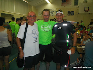 Muitas personalidades do mundo da Ultramaratona participam desta prova, o clima é muito extraordinário, apesar da predominância norte americana, ouvimos muitos idiomas diferentes, entre os 100 atletas da prova este ano tínhamos três atletas do Brasil competindo. Os carros de Equipe todos personalizados tornam isto tudo muito legal. Aproveitei para tirar uma fotografia junto com o Dean Karnazes e aproveitei para conversar um pouco com ele, dizendo que já tinha o encontrado na visita ao Rio de Janeiro em 2009 e também falei que ia depois da corrida conhecer a cidade dele – San Francisco.