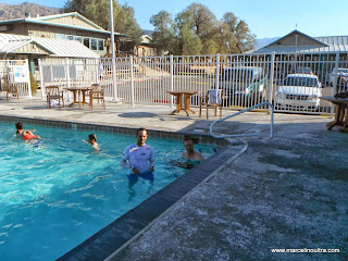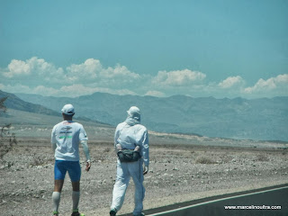 Após uma longa jornada de estrada, contando ainda com uma parada para comprar coisas (mais!) para usarmos na corrida, voltamos ao Furnace Creek Ranch, justamente na hora que o Mike vinha seguindo pela estrada já chegando ao KM 30 de prova.