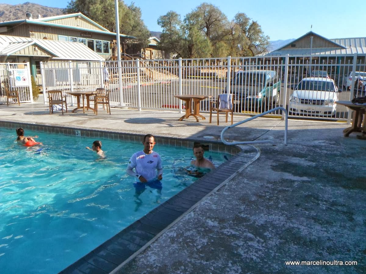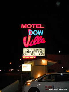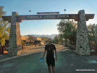 De lá fomos para o nosso hotel, distante 28 Km – Furnace Creek Ranch, que apesar do nome (furnace = fornalha) é um grande oásis no meio deste deserto, contando com extraordinários confortos contrastando com a aridez desértica. Junto com o Furnace Creek Inn formam a rede Furnace Creek Resort e são as únicas duas opções de hotéis perto da largada. Além disto também há opções de campings para estacionamento de trailers (RVs) – que são muito utilizados por aqui – ou acampamento com barracas, porém os campings não são recomendados no verão, devido ao calor extremo.