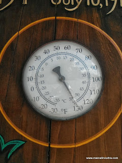 Mais tarde fomos para a entrega de kits e pre-race meeting, realizadas numa tarde extremamente quente. Verifiquem no termômetro abaixo: