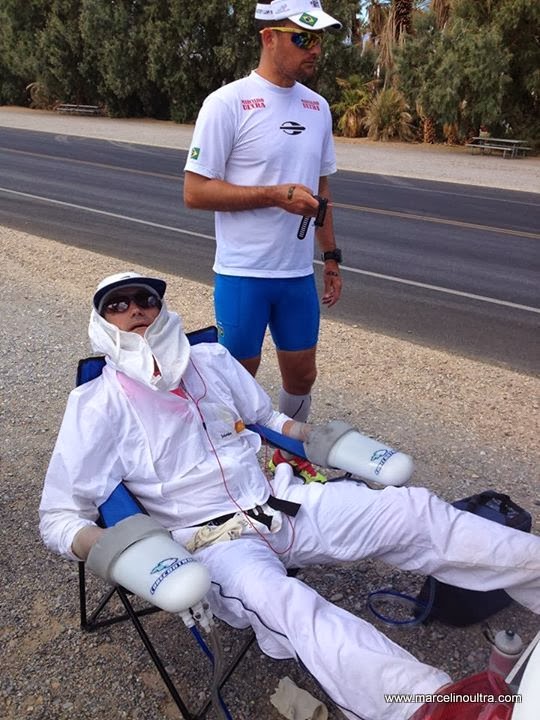 Tive a oportunidade também de encontrar o Mário Lacerda, Race Director da Brazil 135 Ultramarathon. Ele estava acompanhando a Equipe do Eduardo Calisto, brasileiro que figurava entre os favoritos desta edição da Badwater Ultramarathon. Ele liderou a prova por um bom tempo e ficou entre os três primeiros até cerca do KM 120, porém esta prova é cruel e cobra um preço caro se o atleta fizer algo errado. Eduardo teve que ficar parado num posto médico por cerca de 6 horas para se recuperar, mas não desistiu da prova e completou depois em 38h53min, ficando em 36º lugar.