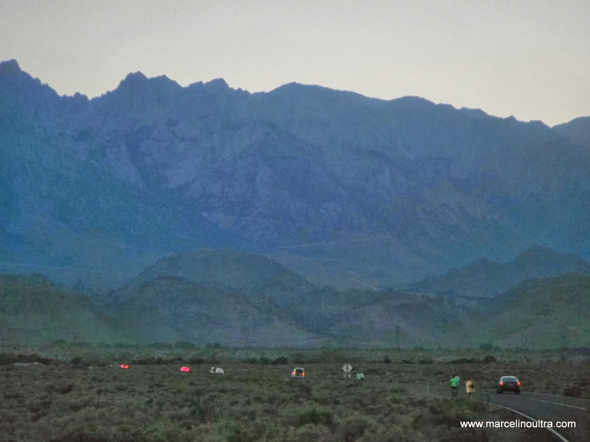 A maioria dos carros que passavam por nós fazia questão de buzinar, piscar faróis, acenar ou até mesmo gritar para apoiar os corredores – muito legal! E a estrada possui várias placas de sinalização da corrida, apesar de que as melhores sinalizações são os carros de apoios, todos decorados e com, entre outros, um grande letreiro refletivo obrigatório escrito: CAUTION RUNNERS ON ROAD.
