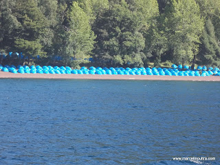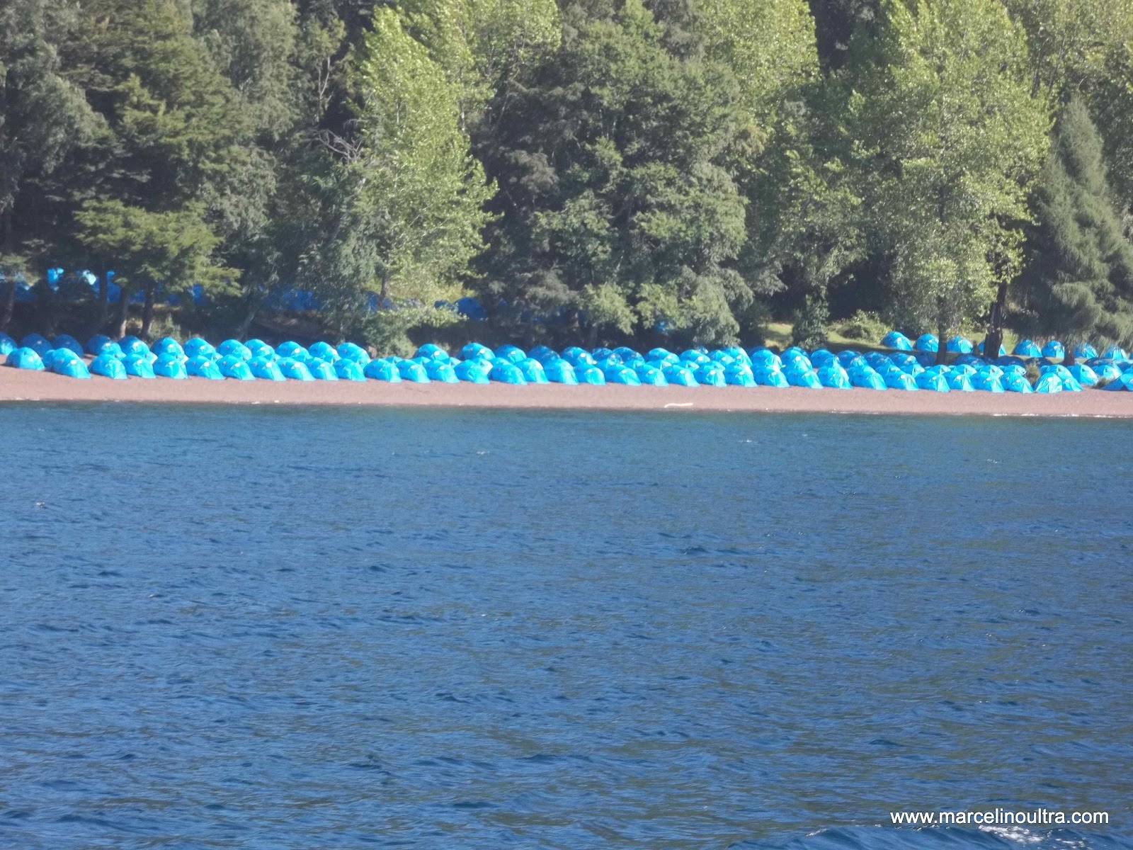 O transbordador Hua Hum, nos presenteou com uma viagem incrível, com paisagens alucinantes por cima do lago Pirehuico e ao chegar próximo ao acampamento tivemos o visual da estrutura grandiosa que foi montada no Camp 1, com cerca de 800 barracas da Columbia.