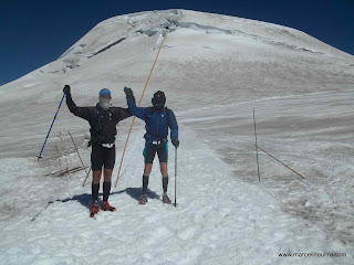 Já totalmente equipados chegamos ao final da subida planejada, mais agora o Vulcão Mocho Choshuenco com seus dois cones vulcânicos (2.415m e 2.422m) nos reservava mais uma tarefa árdua, dar uma volta completa em um de seus cones eternamente nevados.