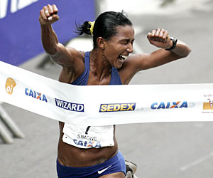 Na prova feminina Simone Alves fica em 2º lugar, com o tempo de 50’25”, apenas 6 segundos atrás da queniana Alice Timbilili, que bateu o recorde da prova.