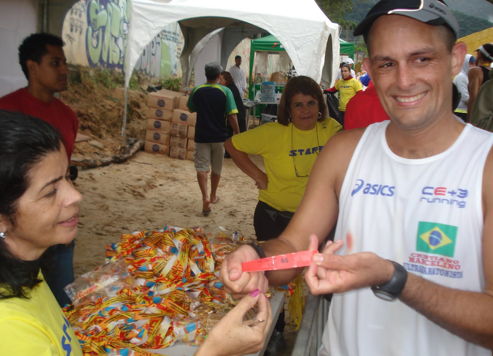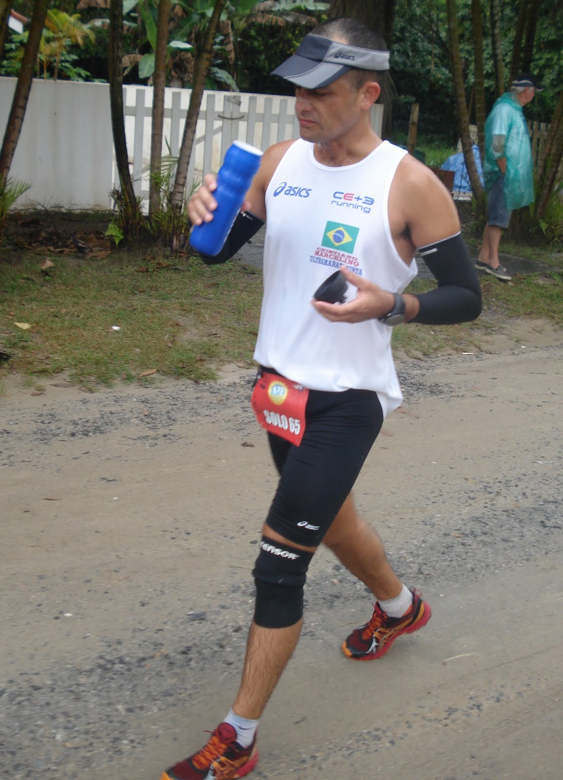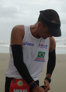 Este ano a prova foi muito fria e toda realizada de baixo de muita chuva. O mar estava de ressaca o que contribuiu para nossos pés ficassem encharcados o tempo todo. Não tive problemas quanto ao equipamento. Utilizei tudo da ASICS, proporcionando bastante conforto e performance: